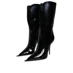 Dolce & Gabbana Black Patent Leather Mid Calf Boots Shoes