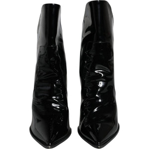 Dolce & Gabbana Black Patent Leather Pointed Ankle Boot Shoes