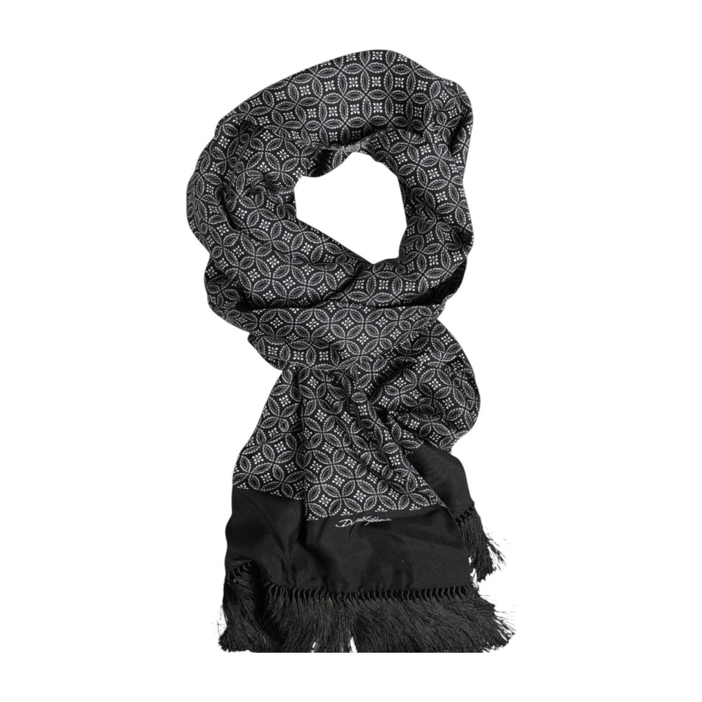 Dolce & Gabbana Black Patterned Fringes Men Foulard Scarf