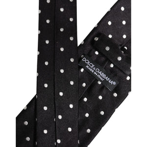 Dolce & Gabbana Black Polka Dots Silk Adjustable Necktie Tie