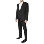 Dolce & Gabbana Black Polyester Floral Jacquard 2 Piece Suit