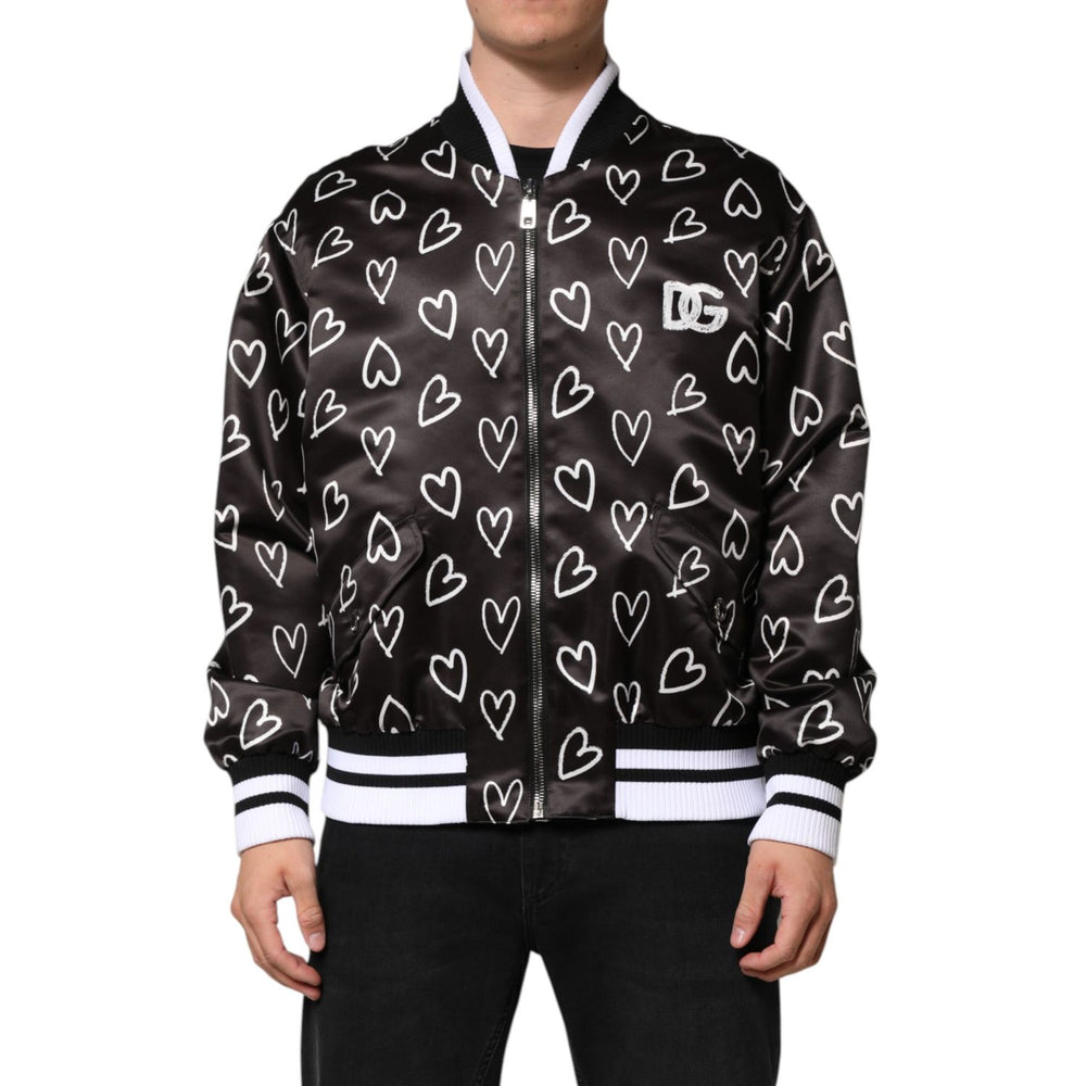 Dolce & Gabbana Black Polyester Heart Print Bomber Jacket