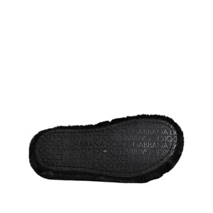 Dolce & Gabbana Black Polyester Velvet Slides Slipper Shoes
