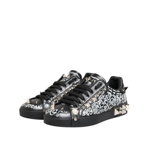 Dolce & Gabbana Black Portofino Stud Embellished Sneakers Shoes