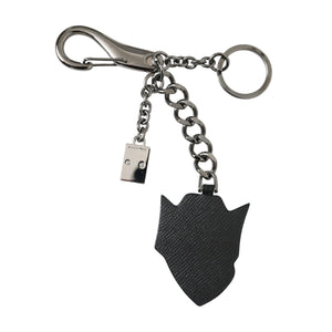 Dolce & Gabbana Black Prince Studs Logo Silver Brass Keychain Keyring