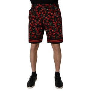 Dolce & Gabbana Black Red Cherry Print Bermuda Cotton Shorts