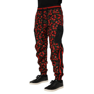Dolce & Gabbana Black Red Cherry Print Men Sweatpants Pants