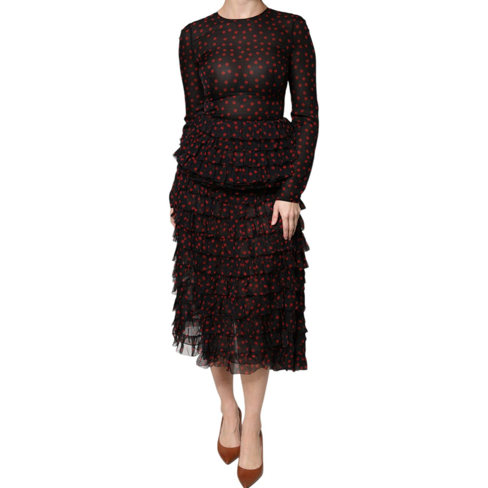 Dolce & Gabbana Black Red Polka Dot Silk Layered Midi Dress