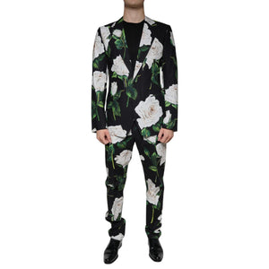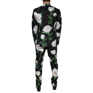 Dolce & Gabbana Black Rose Cotton Men Formal 2 Piece Suit