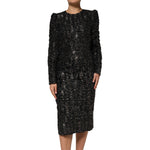 Dolce & Gabbana Black Sequin Bouclé Tweed Sheath Dress
