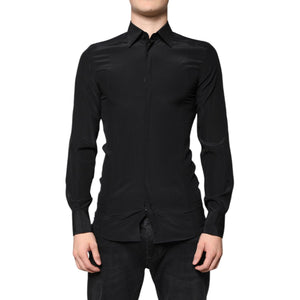 Dolce & Gabbana Black Silk Long Sleeves GOLD Dress Shirt