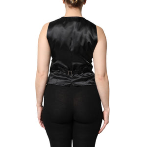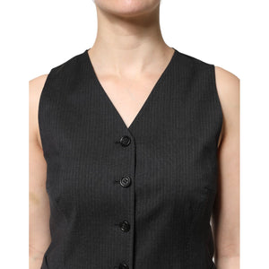 Dolce & Gabbana Black Striped Button Down Sleeveless Vest Top