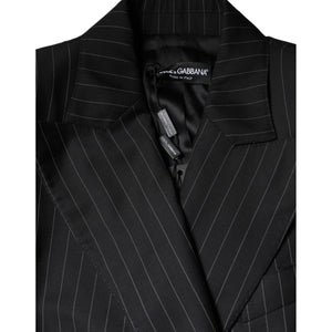 Dolce & Gabbana Black Striped Double Breasted Coat Jacket