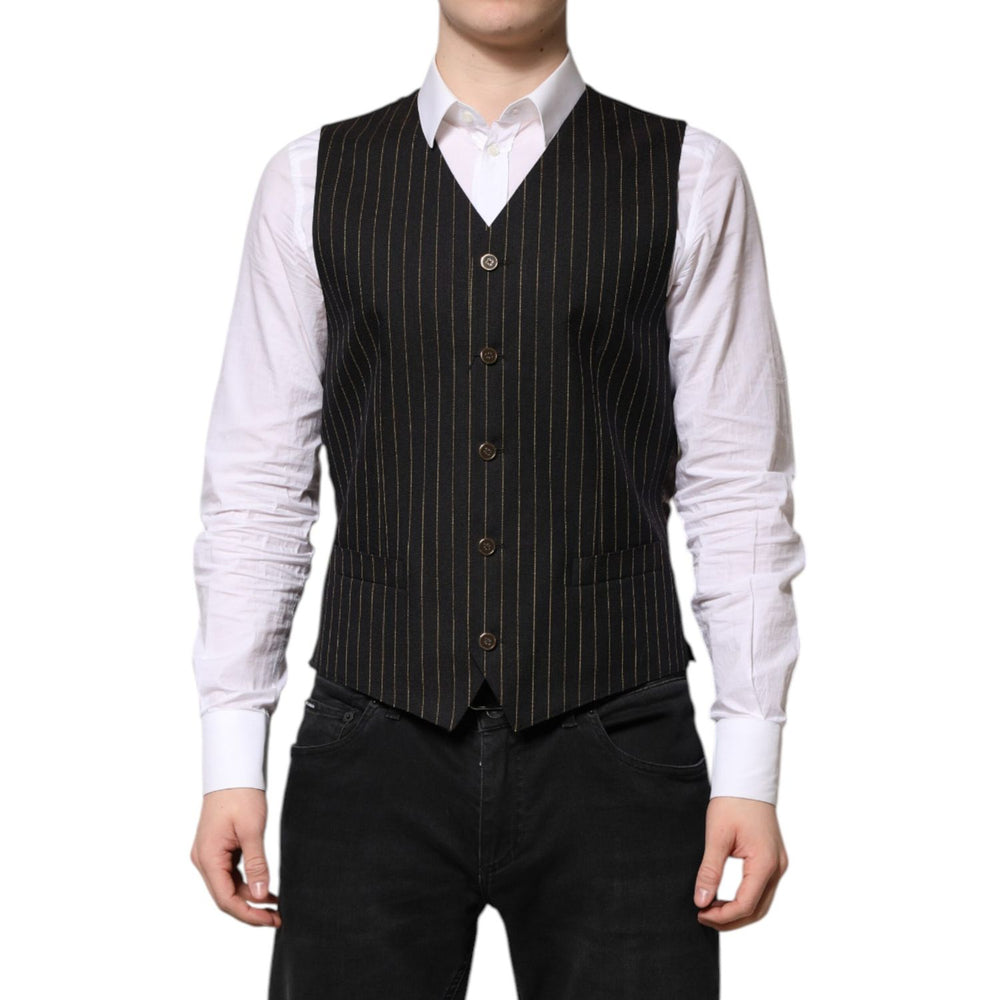 Dolce & Gabbana Black Stripes Wool Formal Men Waistcoat Vest