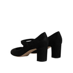Dolce & Gabbana Black Suede Leather Block Heels Pumps Shoes