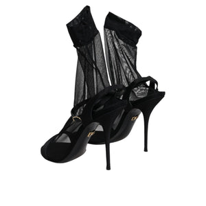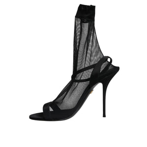 Dolce & Gabbana Black Tulle Stretch Heels Sandals Shoes