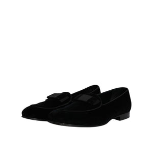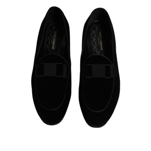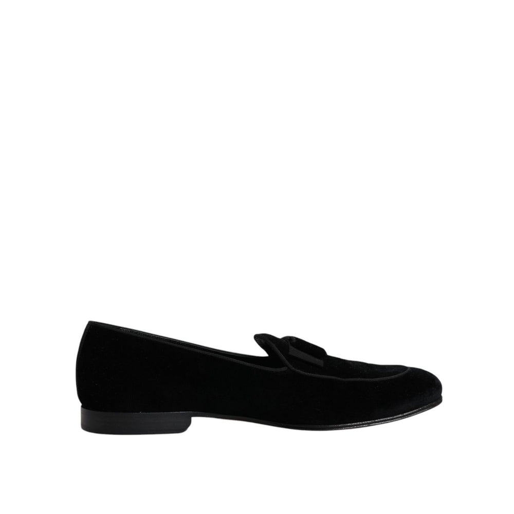 Dolce & Gabbana Black Velvet Loafers Formal Men Dress Shoes