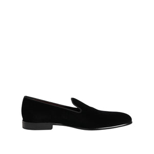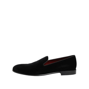 Dolce & Gabbana Black Velvet Slip On Men Loafers Formal Shoes