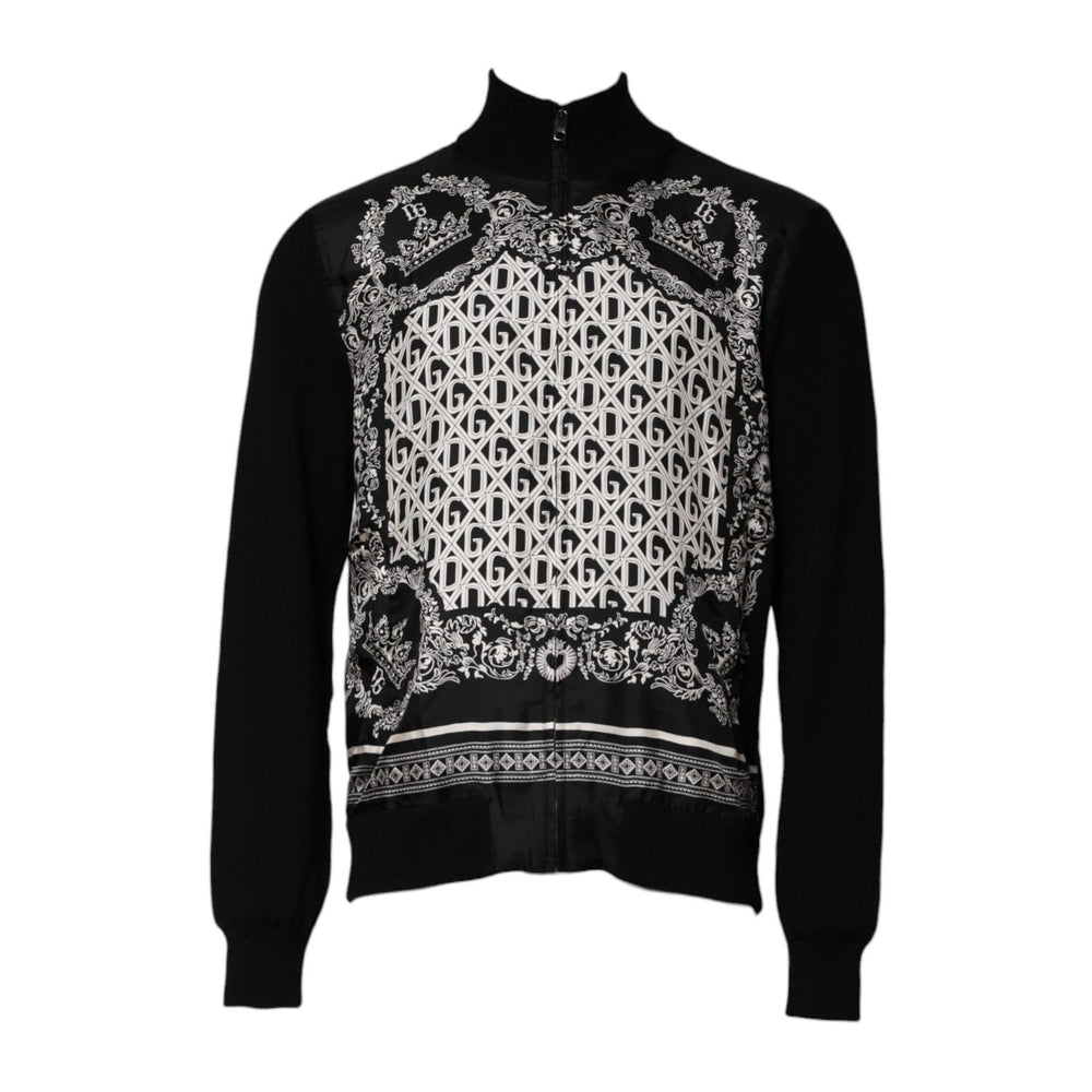 Dolce & Gabbana Black White Bandana Print Full Zip Sweater