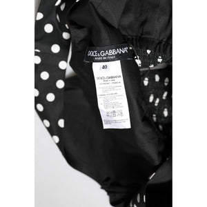 Dolce & Gabbana Black White Cotton Polka Dot Print V Neck Dress