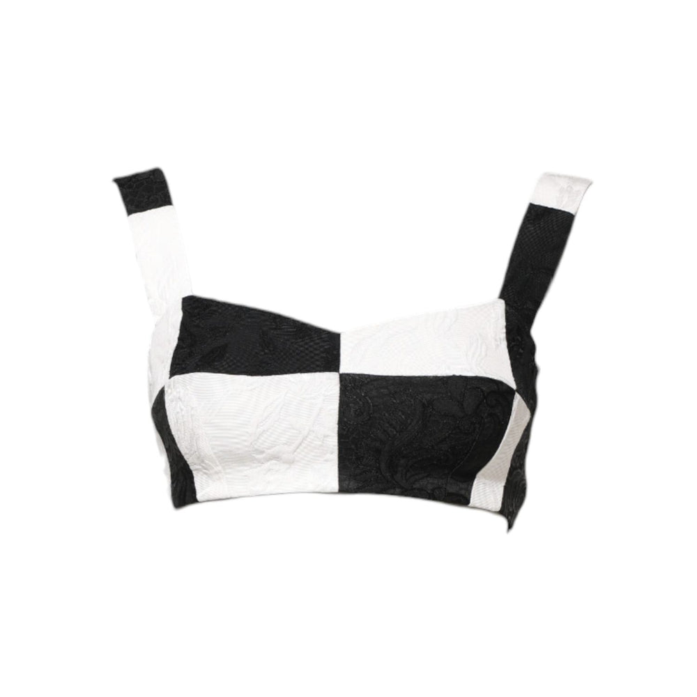 Dolce & Gabbana Black White Cropped Bustier Corset Bra Top