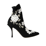 Dolce & Gabbana Black White Embroidery Slip On Boots Shoes