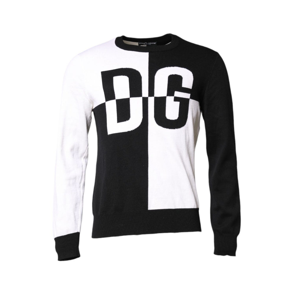 Dolce & Gabbana Black White Knit Logo Print Pullover Sweater