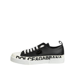 Dolce & Gabbana Black White Leather Low Top Sneakers Shoes