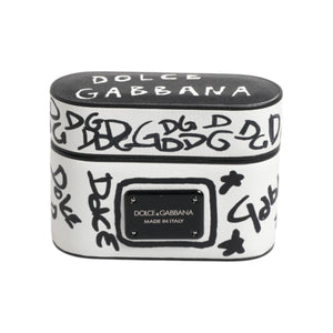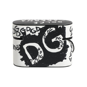 • Dolce & Gabbana Black White Leather Scribble Embossed Logo Airpods Case