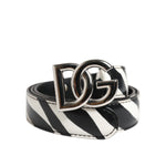 Dolce & Gabbana Black White Leather Silver Metal Buckle Belt
