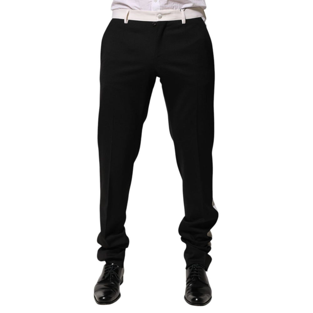 Dolce & Gabbana Black White Stripe Wool Men Trouser Pants