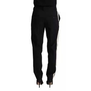Dolce & Gabbana Black White Stripes Wool Tapered Pants
