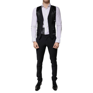 Dolce & Gabbana Black Wool 3 Piece Slim Fit Formal Men Suit