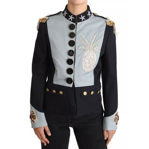 Dolce & Gabbana Blue Button Crystal Embellished Cotton Jacket