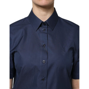 Dolce & Gabbana Blue Cotton Short Sleeves Button Down Top