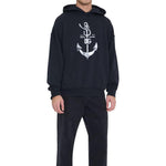 Blue Cotton Jersey Hoodie with Marina Print.