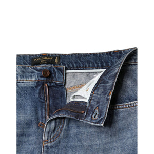 Dolce & Gabbana Blue Cotton Tattered Boyfriend Denim Jeans