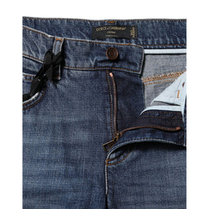 Dolce & Gabbana Blue Cotton Tattered Boyfriend Denim Jeans