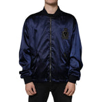 Dolce & Gabbana Blue Crown Heart Full Zip Men Bomber Jacket