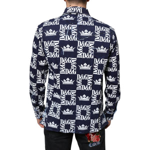Dolce & Gabbana Blue Crown Logo Print Slim Fit Cotton Shirt