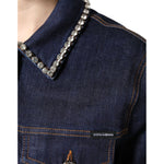 Dolce & Gabbana Blue Denim Cotton Crystal Embellished Jacket