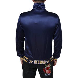 Absolutely stunning, 100% Authentic, Dolce & Gabbana blue sweatshirt with a large heraldic patch on the left chest with wide star panels accentuate the sleeves, and a striped motif on the waistband and cuffs.