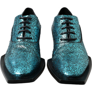 Dolce & Gabbana Blue Leather Derby Block Heels Dress Shoes
