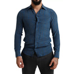 Dolce & Gabbana Blue MARTINI Silk Slim Fit Long Sleeves Shirt