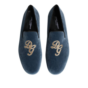 Dolce & Gabbana Blue Velvet DG Logo Loafers Formal Shoes