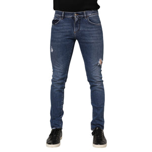 Dolce & Gabbana Blue Washed Skinny Cotton Tattered Denim Jeans
