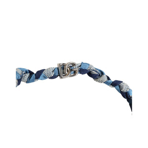 Dolce & Gabbana Blue White Braided Silver Metal Logo Beaded Men Bracelet
