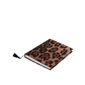 Dolce & Gabbana Brown Black Polyester Leopard Logo Print Small Notebook