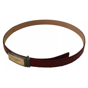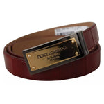 Dolce & Gabbana Brown Leather Gold Engraved Metal Buckle Belt