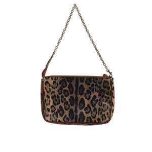 Dolce & Gabbana Brown Leopard Leather Shoulder Chain Strap Bag